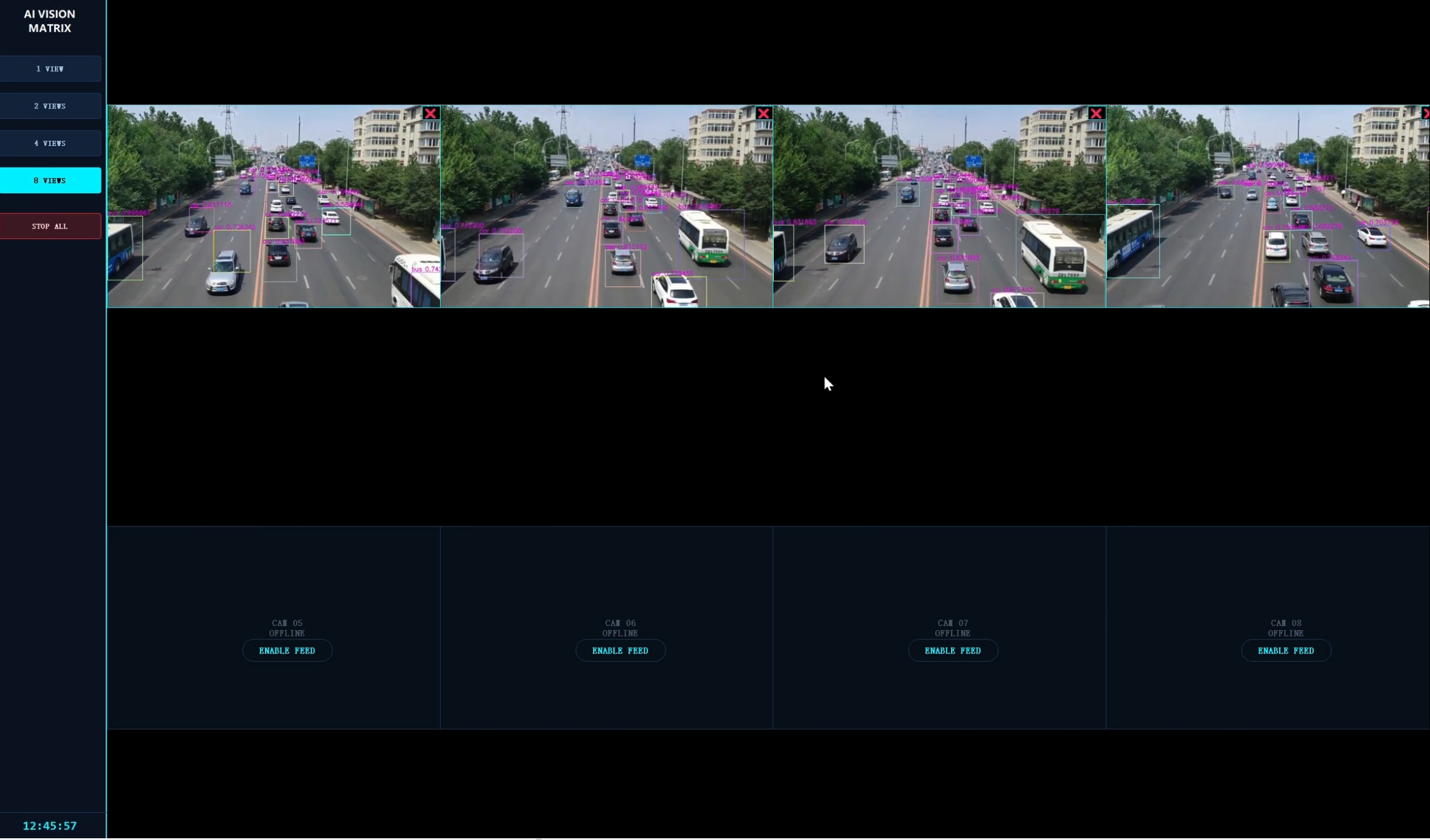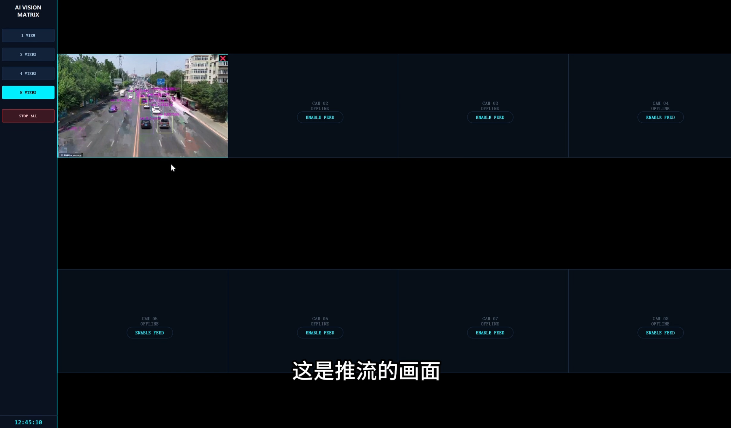直接拉满 8 路视频流!这是很多纯 Python 方案的"死穴",通常会导致卡顿、花屏甚至程序崩溃。