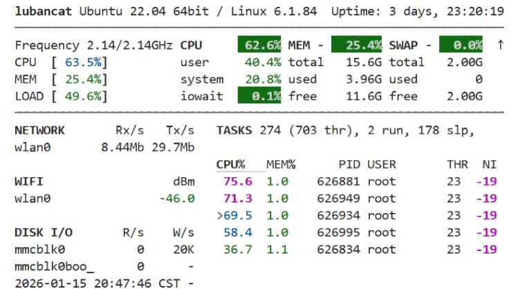 为了验证这套封装的含金量,我进行了一次阶梯式的压力测试。测试内容包括:RTSP 拉流 -> MPP 硬件解码 -> 结果处理 -> RTSP 推流。