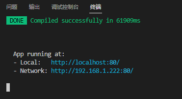 启动完成后,正常情况控制台会输出,按住ctrl 点击 http://localhost:80/在浏览器中访问