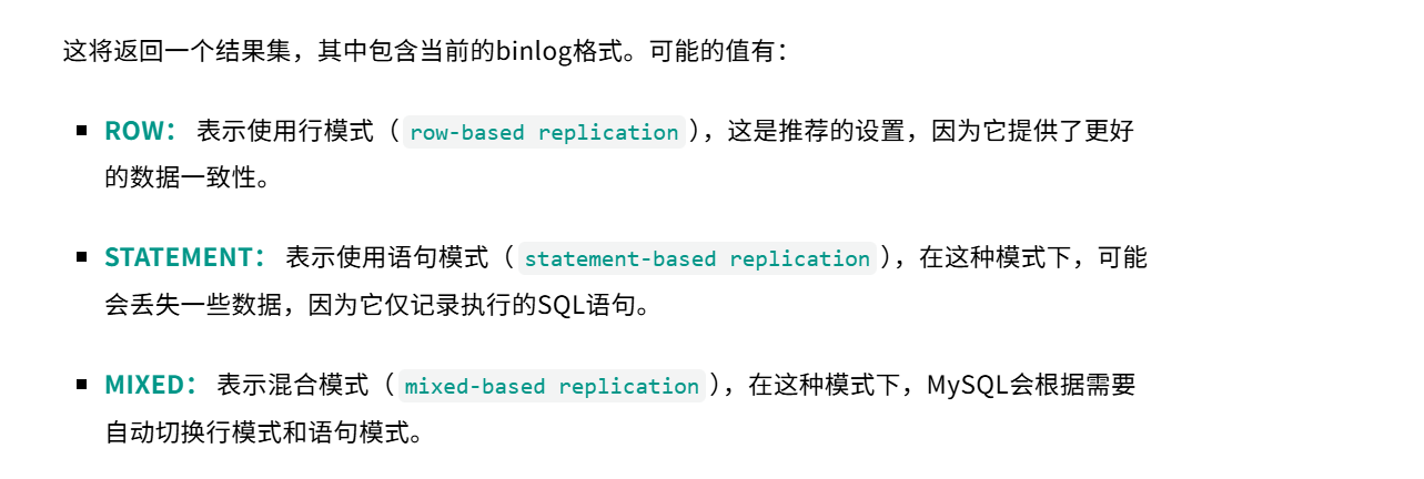 SHOW VARIABLES LIKE 'binlog_format';