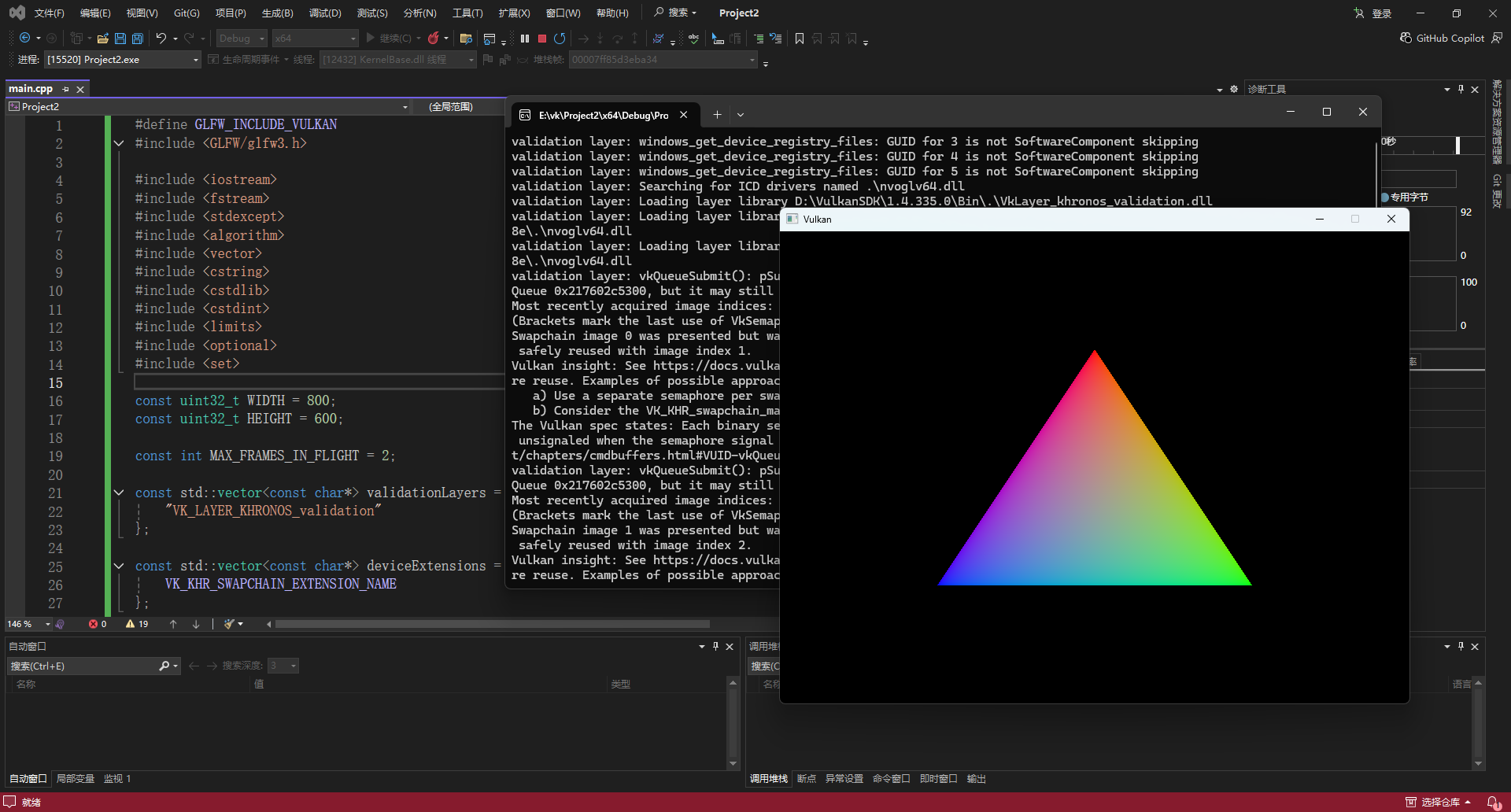 程序直接崩溃? 检查 Validation Layers 的输出。最常见的是