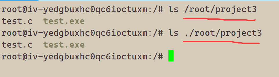 绝对路径,是一种特殊的相对路径。所以下面两个划线指令,效果是相同的: