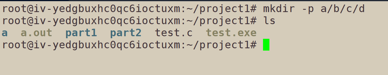 而要想创建一串目录,使用mkdir -p: