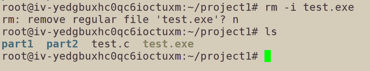还有一个指令rm -i,使用了-i,就可以弹出询问:
