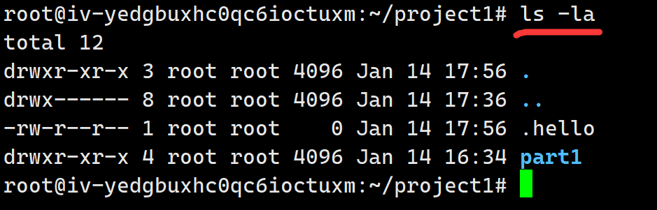 这时,我们用一个指令ls -a: