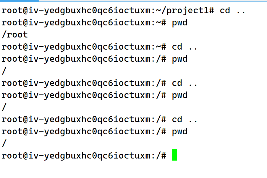 我们来不断进行cd ..、pwd操作: