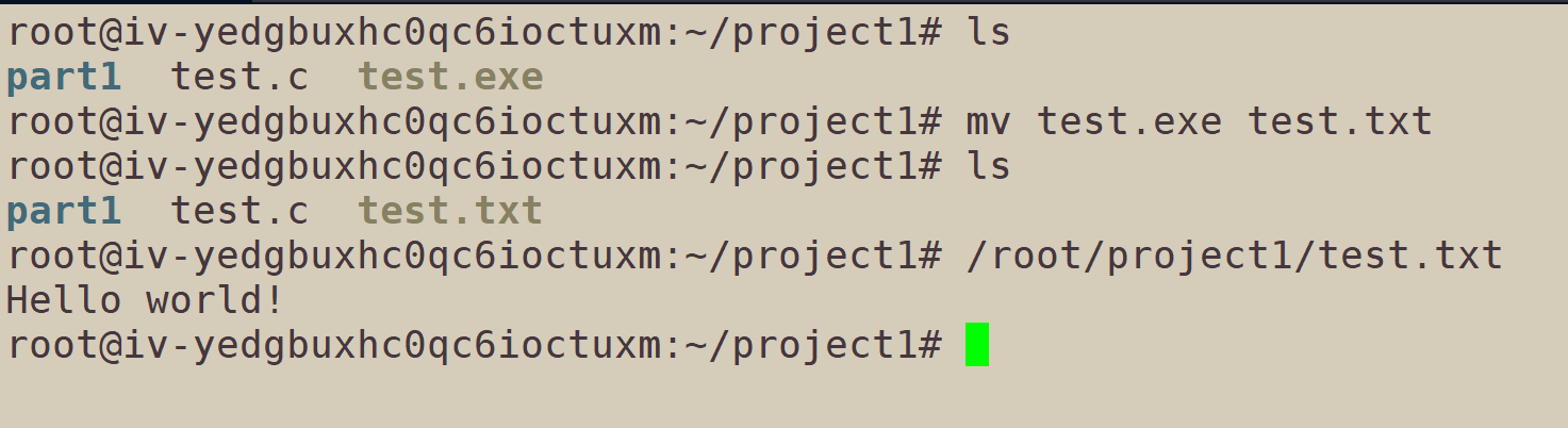 这里准备了一个源文件、一个可执行文件。