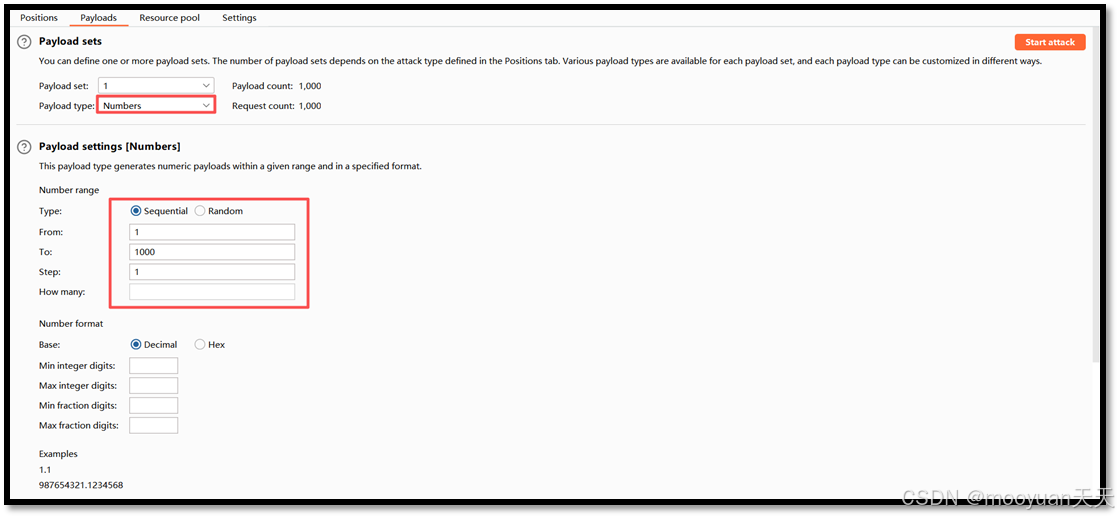 payload配置为number,数字范围为1到1000,step为1,如下所示。