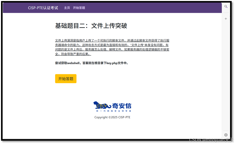 点击开始答题,如下所示进入了文件上传的真实页面,具体如下所示。