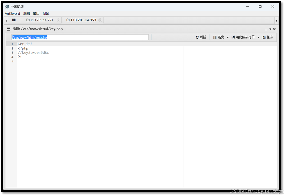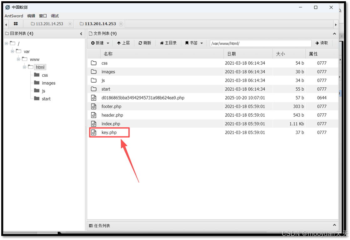 双击key.php,查看key.php(/var/www/html/key.php),如下所示成功获取到flag。