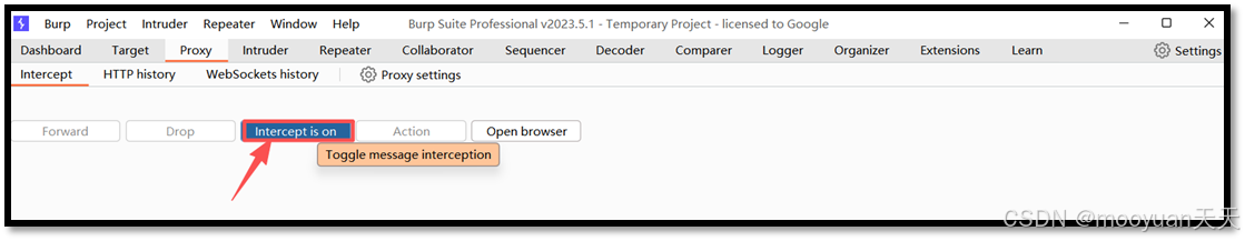 使用burpsuite进行抓包,inception设置为on,如下所示。