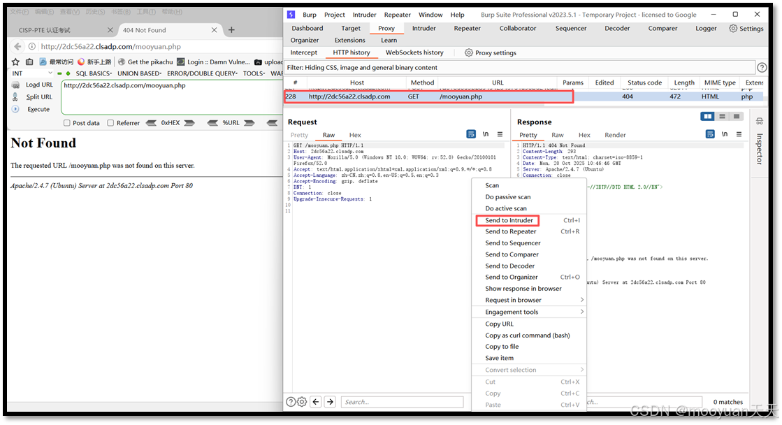 开启bp,同时浏览器代理指向bp,选择mooyuan.php文件并点击上传,如下所示。