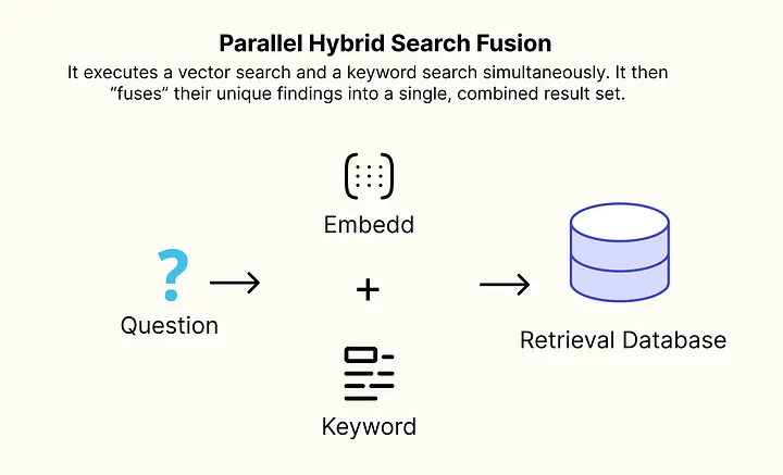 该架构同时执行向量搜索和关键词搜索,然后将其独特发现"融合"成单一、组合的结果集。