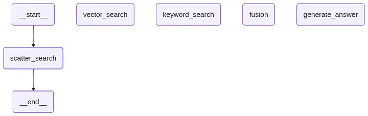 接下来构建混合 RAG 系统,其核心是 LangGraph 节点,并行运行两个检索器,然后融合结果。