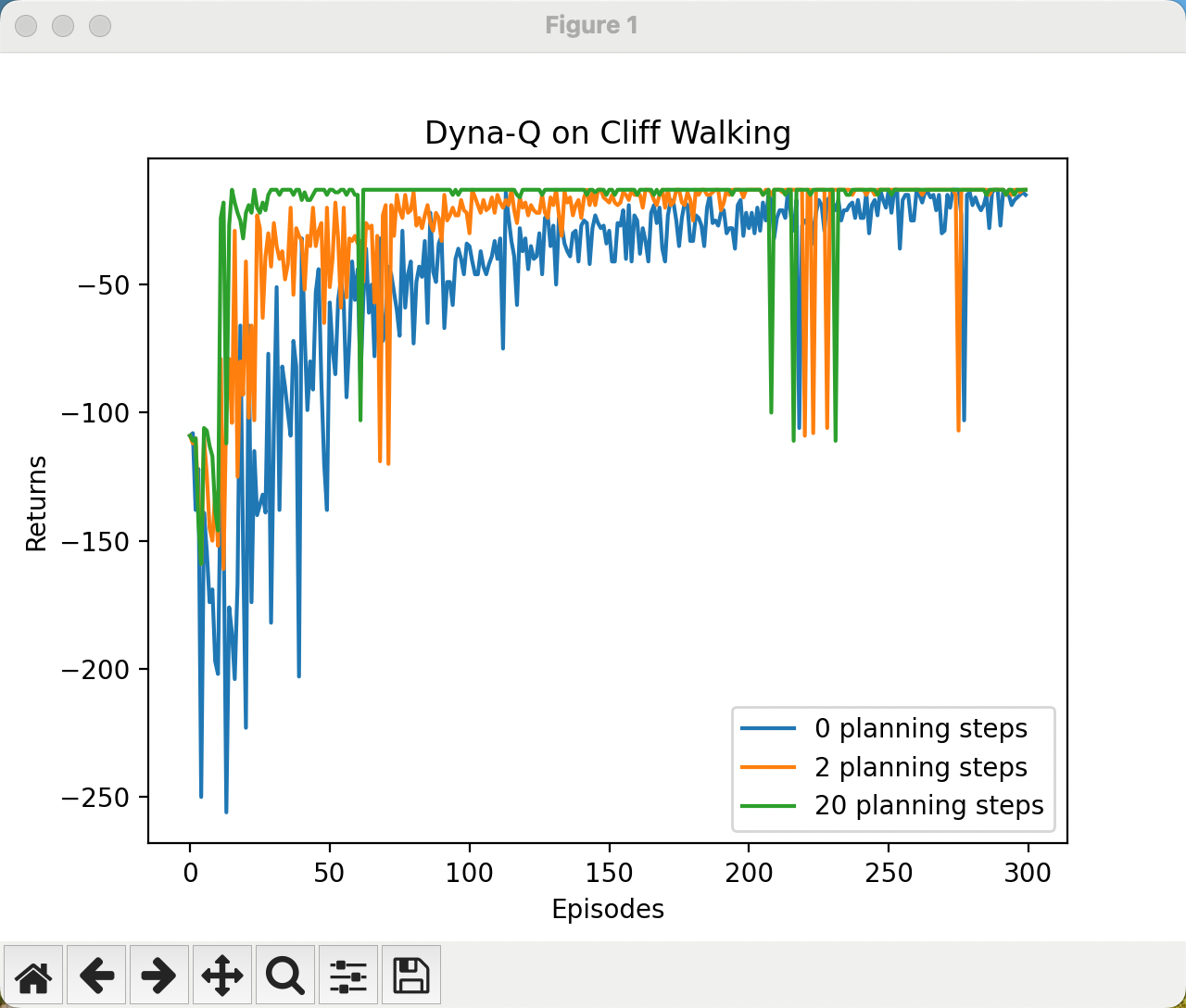 agent=DynaQ(ncol,nrow,epsilon=0.01,alpha=0.1,gamma=0.9,planning_steps=n_planning)
