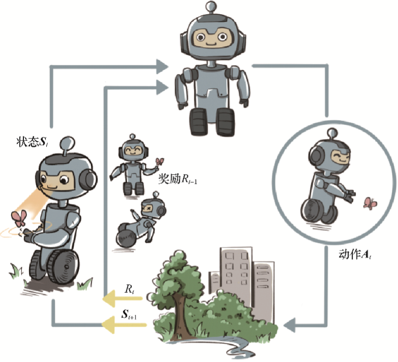 这里,智能体有3种关键要素,即感知、决策和奖励。