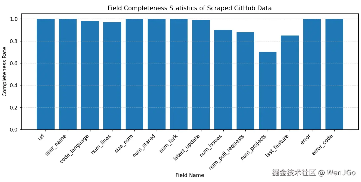 在本文的实践中,我们以 GitHub 仓库中的代码文件为采集对象,完成了一次从数据获取、结构化存储到可视化分析的完整流程。抓取阶段采用 Web Scraper API 的方式,将代码文件的元信息直接转换为结构化结果,并统一保存为 CSV 文件,便于后续分析处理。
