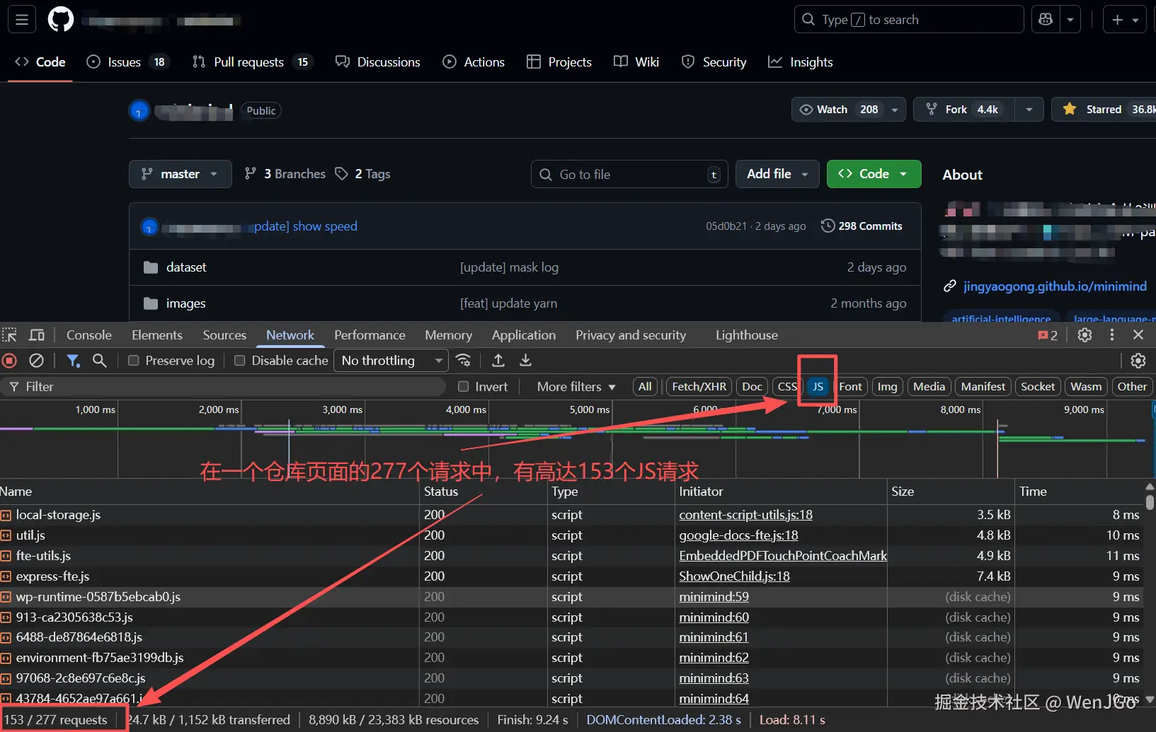 部分仓库详情页中的信息,实际依赖前端渲染完成。