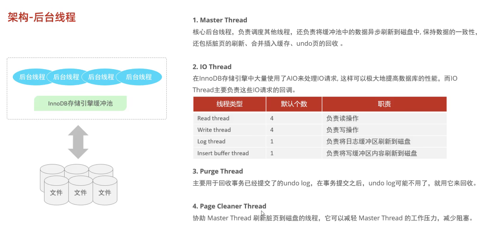 InnoDB 主要有 4 类核心后台线程,各司其职: