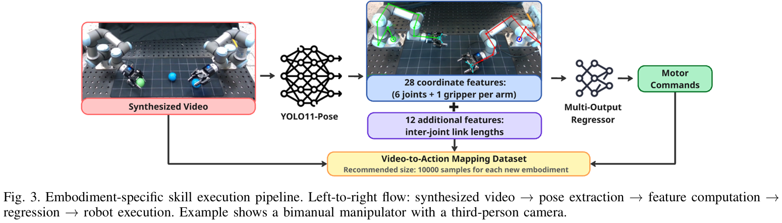 该框架的核心原则是感知与推理模块不绑定特定机器人形态,仅需为不同机器人训练轻量级骨骼检测模型(计算开销小、数据需求低)。这种设计的合理性源于三点: