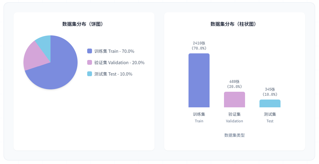 训练集用于模型的参数学习和特征提取能力训练。验证集用于训练过程中的性能监控和超参数调优,帮助选择最优模型。测试集用于最终的性能评估,确保模型在未见过的数据上具有良好的泛化能力。