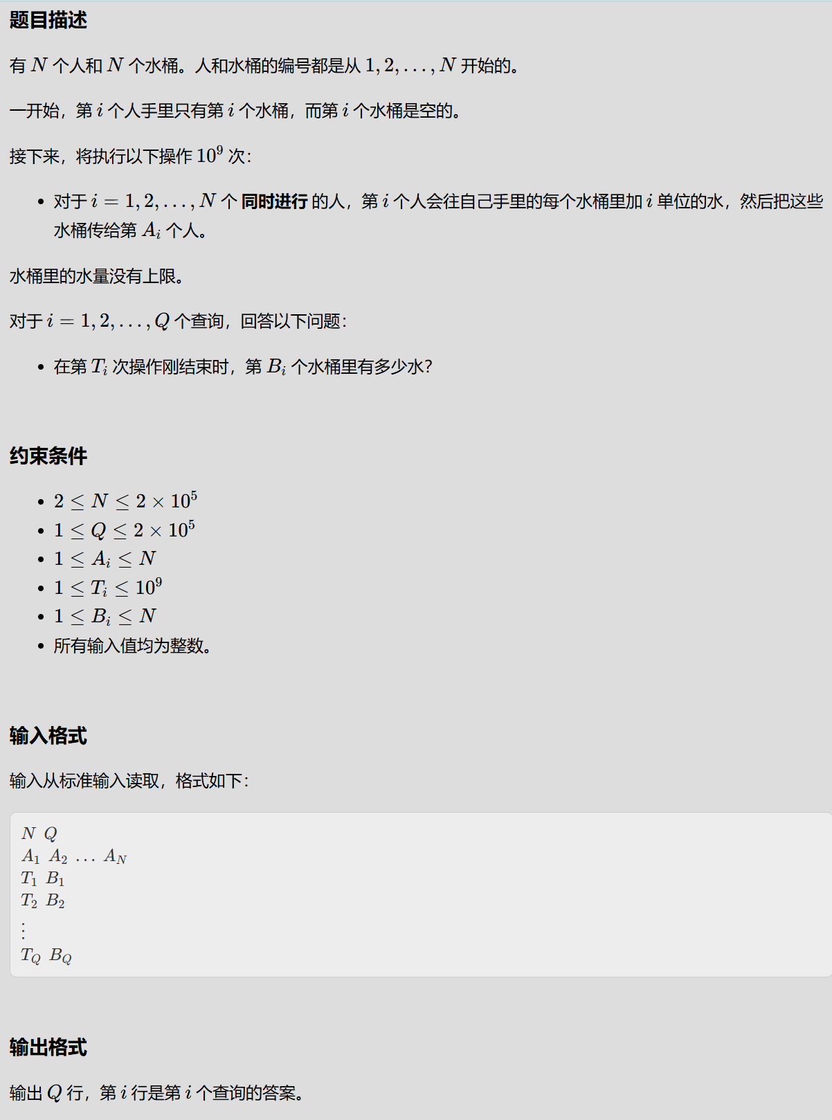 //st[i][j]:第i个水桶走2^j步到达的位置 s[i][j]:第i个水桶走2^j装的水