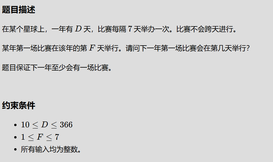 int x=(d-f+6)/7;//向上取整(d-f)/7
