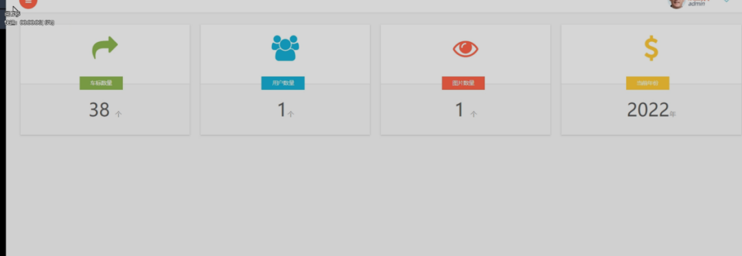 在登录之后,整个系统的页面会有一些相应的统计信息展示在主页面中,在主页面中会有车标的数量、当前系统中用户的数量、识别的图片的数量以及当下所在的年份信息等内容。