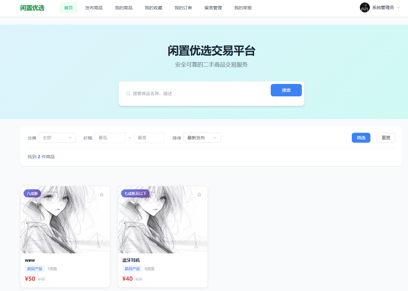 - 二手物品交易平台