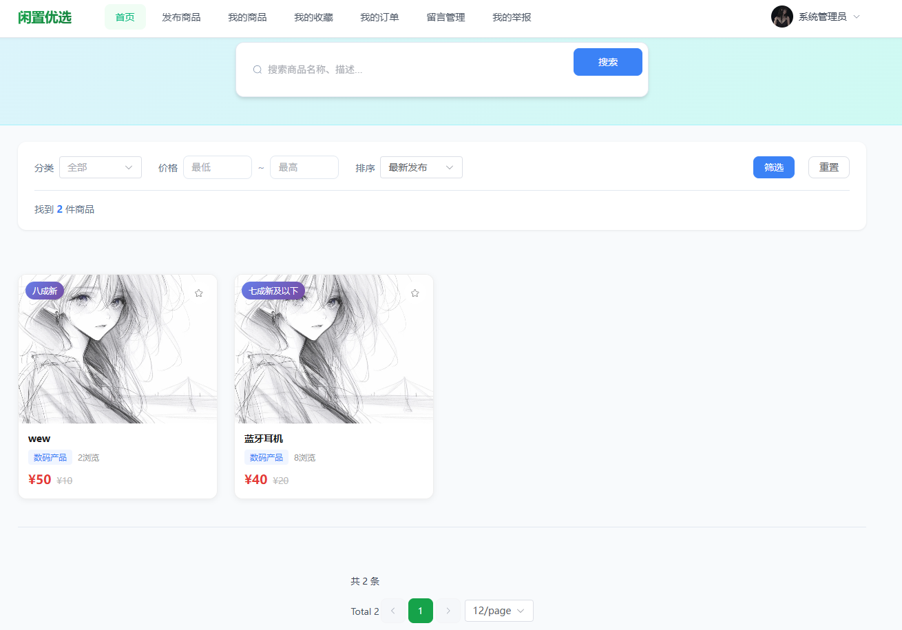 系统基于Spring Boot、Vue 3 与MySQL实现了二手交易平台的核心能力,完成普通用户、管理员、游客三类角色的功能边界划分。系统实现商品发布与浏览检索、收藏、订单状态流转、留言回复、评价与举报处理等功能,并通过JWT认证与拦截器机制实现接口访问控制。