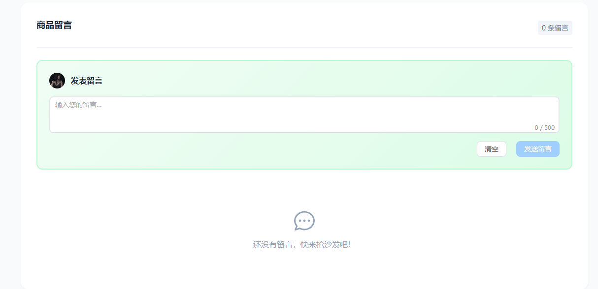 留言模块用于在交易前进行咨询沟通,减少信息不对称。留言与回复采用"买家发起、卖家回复"的交互方式,留言状态字段用于区分未回复与已回复,便于卖家在消息页集中处理。