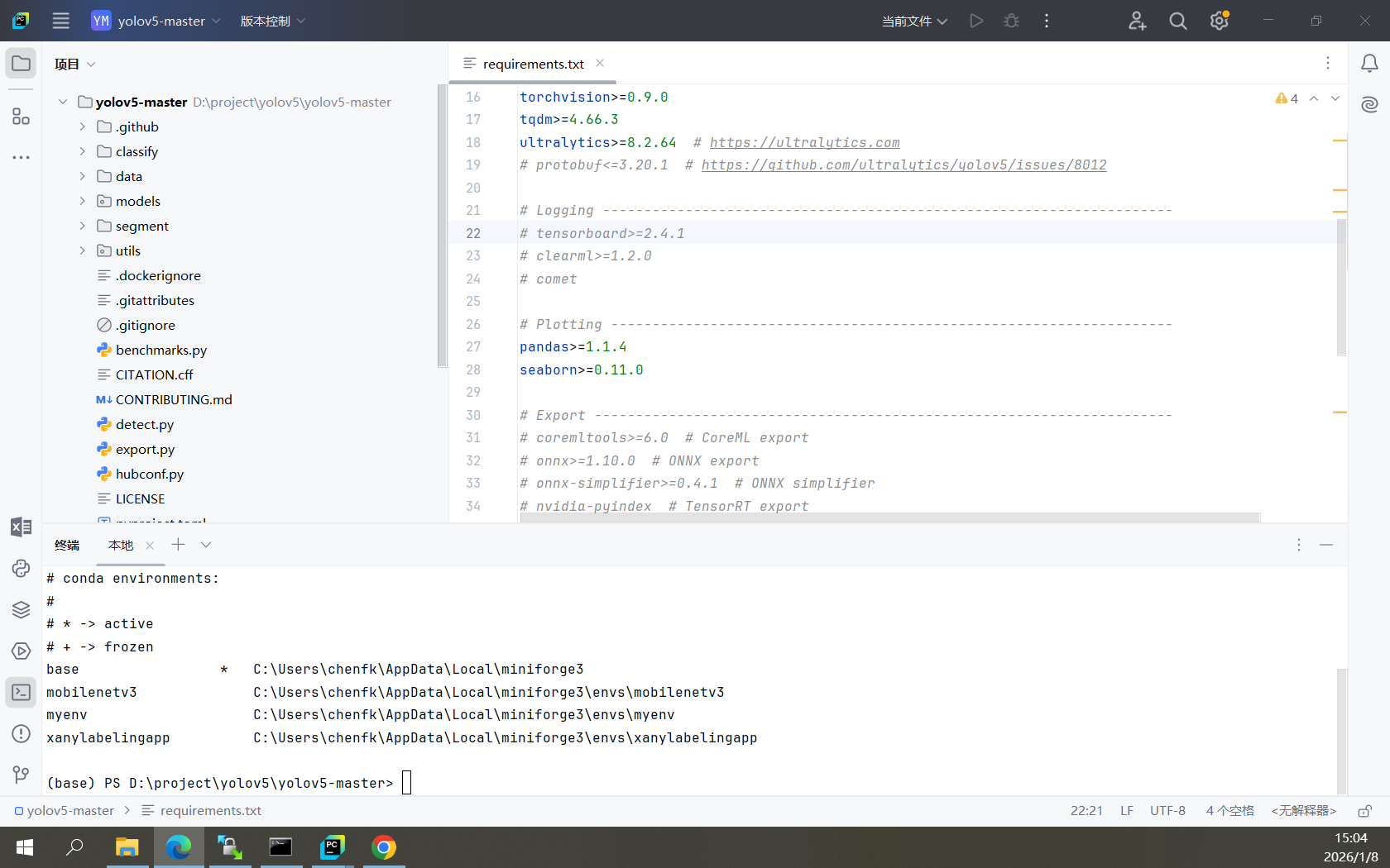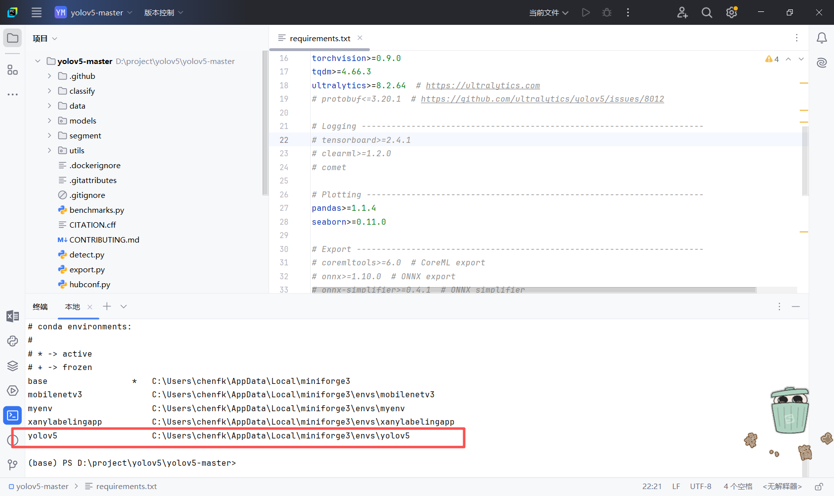 2.打开终端,配置独属于yolov5的环境(可以在pycharm,也可以win+r打开cmd进行配置,都是可以的)