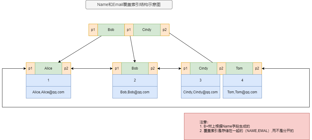 → 可以直接从索引中读取 (NAME, EMAIL),不需要回表访问数据行