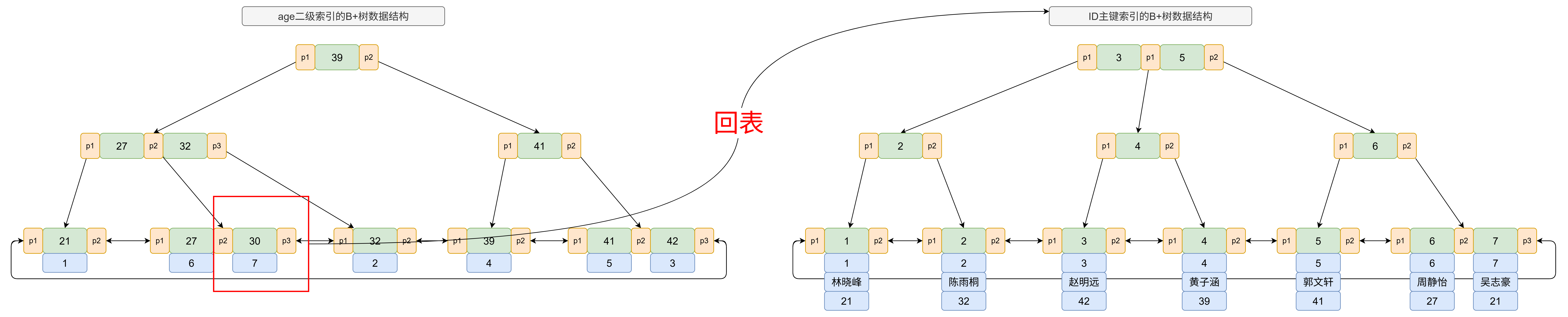 → 必须通过 ID=2 回表查找 AGE → 需要额外 I/O