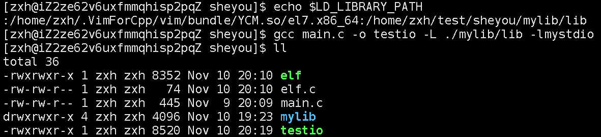 同时我们将生成的mylib动态库拷贝到新路径中,等待被使用。