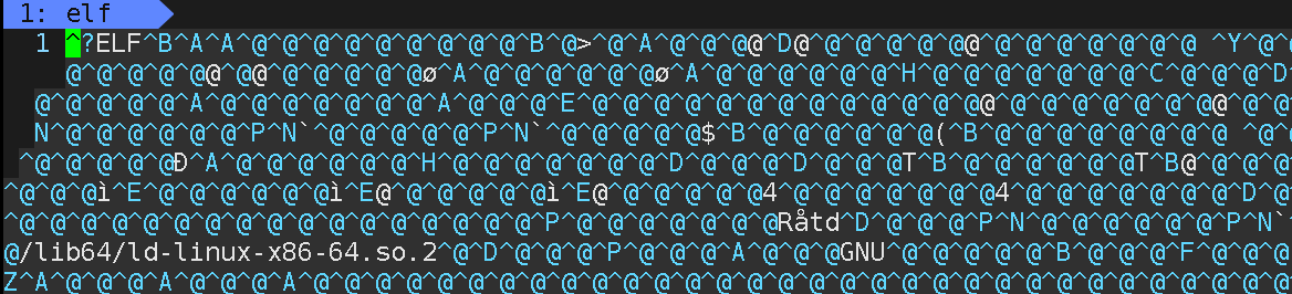 在谈论ELF是什么时,我们先来谈谈可执行程序,我们都知道可执行程序是二进制的,如果使用vim查看,会出现一对乱码,如下: