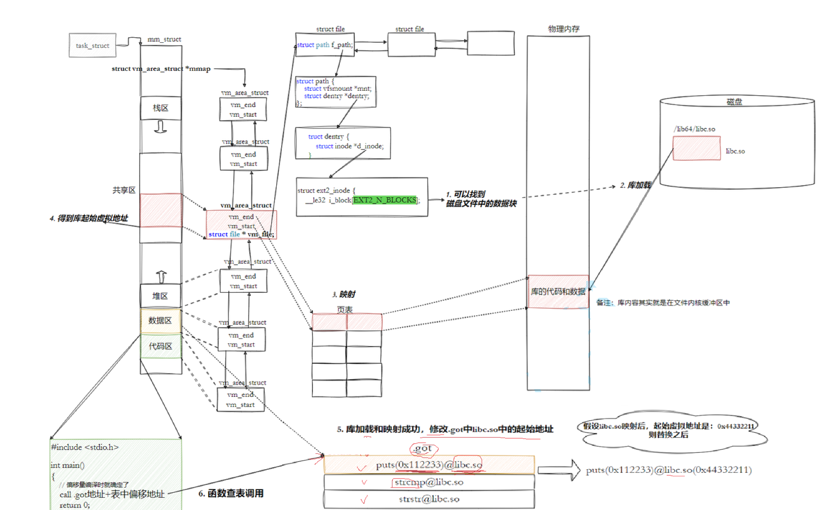 加载到共享区之后进程的页表建立虚拟地址与物理地址的链接,也就能够找到动态库文件