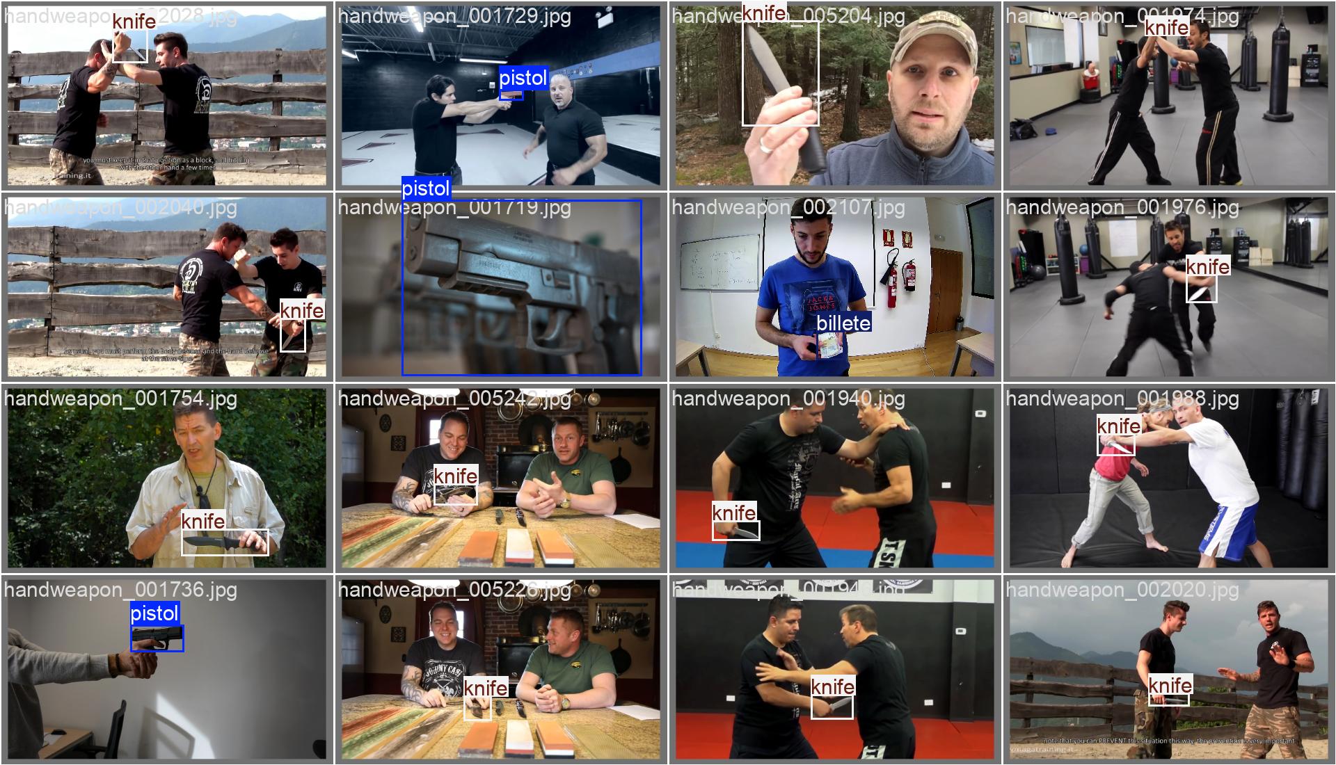- 适用实际项目应用:安防监控场景下手持危险物检测项目,以及作为安防监控场景通用危险物检测数据集场景数据的补充;