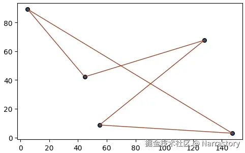 现在,我们编写一个通用的可视化函数,它可以将任意给定的访问序列 lineSet 在城市点集 points 上画成一条闭合的回路。(不需要理解这个函数,只要会调用这个函数就行)