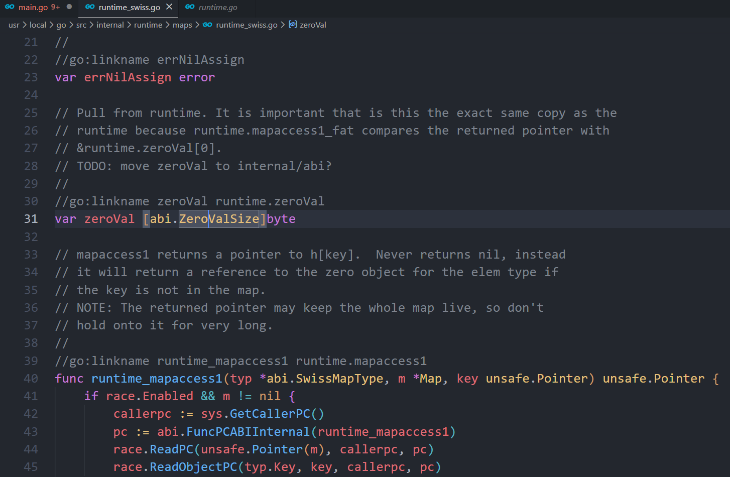 func mapaccess1(t *maptype, h *hmap, key unsafe.Pointer) unsafe.Pointer {