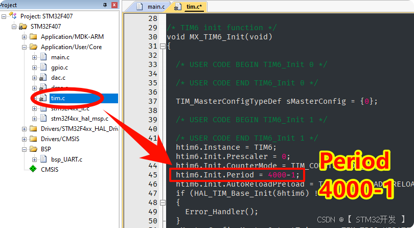 - 修改 TIM 初始化中的 htim6.Init.Period = 4000-1
