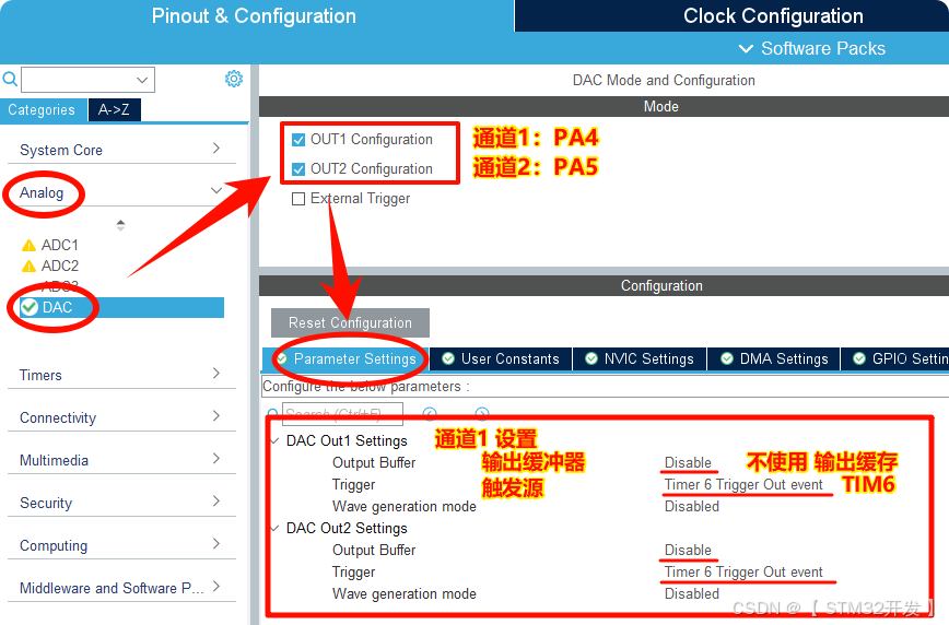 注意!别漏了添加DAC2,不然PA5会没信号输出。