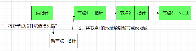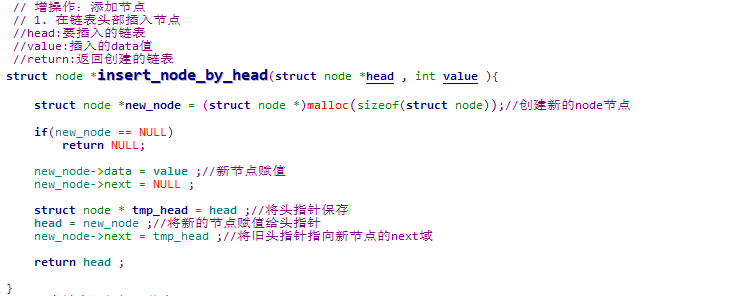 new_node->next = tmp_head ;//将旧头指针指向新节点的next域