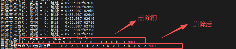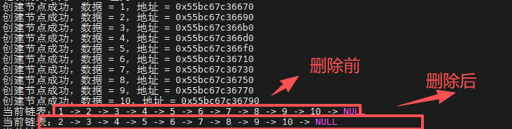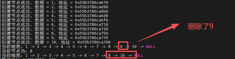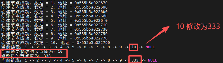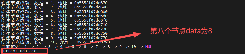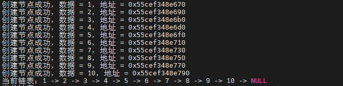 printf("创建节点成功,数据 = %d,地址 = %p\n", new_node->data, new_node);