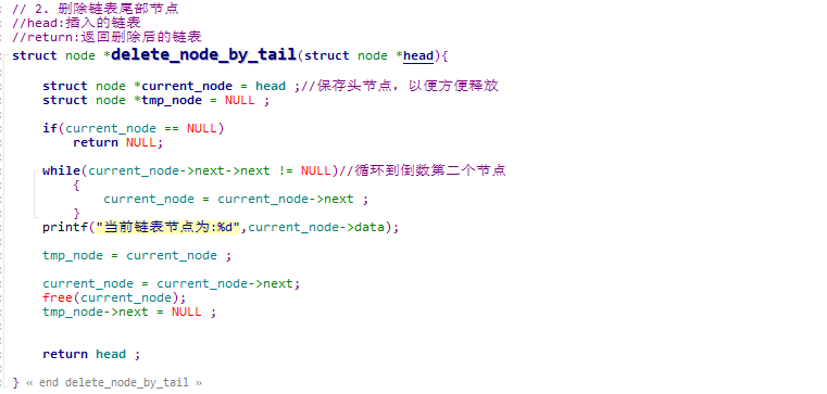 while(current_node->next->next != NULL)//循环到倒数第二个节点