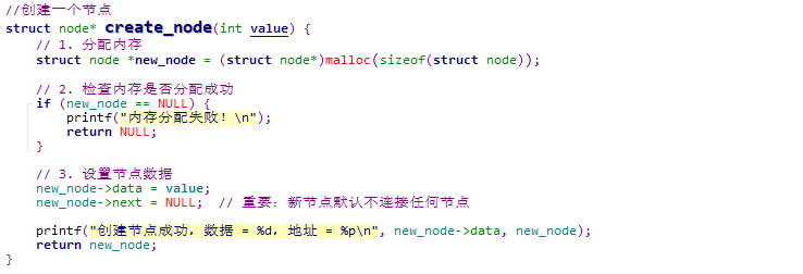 new_node->next = NULL; // 重要:新节点默认不连接任何节点