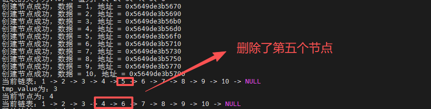 tmp_value -= 2;//当位置个数大于1时候,比如2:删除第二个数据,只需要执行一次指针跳跃,所以进行减一,并且需要在到删除节点的前一个节点