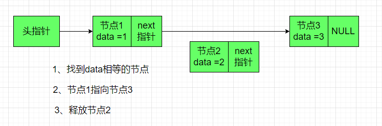 删除指定值(结构体中data的值)的节点(第一个匹配的)