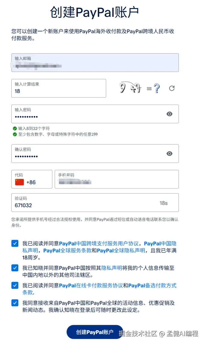 小提醒:如果你之前注册过 PayPal,需要换一个新的邮箱(否则可能无法继续创建)。