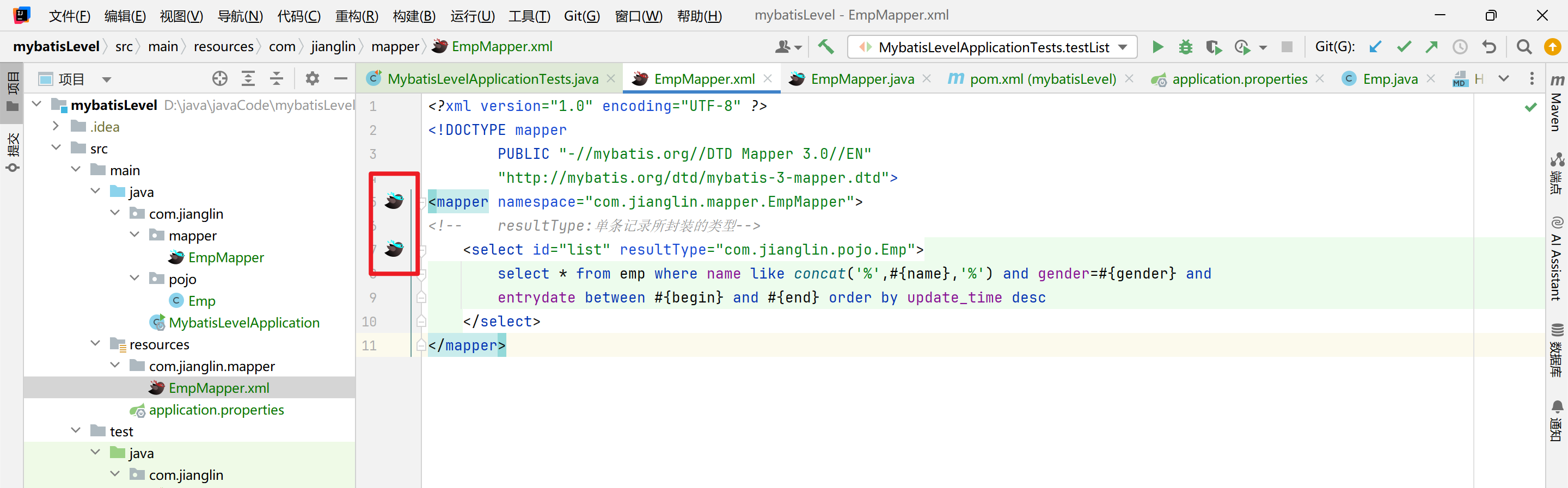 // List<Emp> empList = empMapper.list("张", (short) 1, LocalDate.of(2000, 1, 1), LocalDate.of(2025, 1, 1));